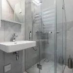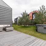 Diese Unterkunft in Palanga verfügt über ein Badezimmer mit einer getrennten Toilette, einem Whirlpool und einer Dusche. Badezimmer sind auch mit einem Haartrockner, kostenlosen Toilettenartikeln und Badelaken für Ihren Komfort ausgestattet.